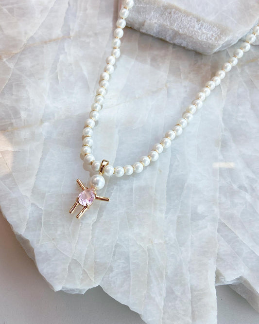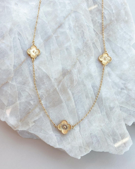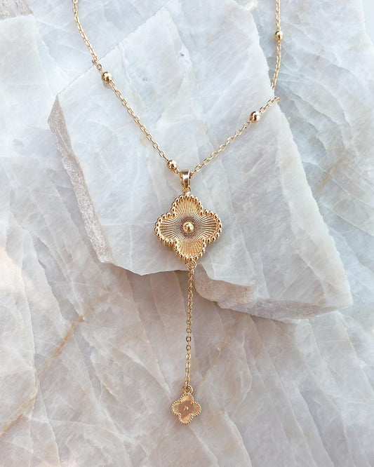 Colar Gravata Bolinhas 40cm Pingente Flor Vancleef
