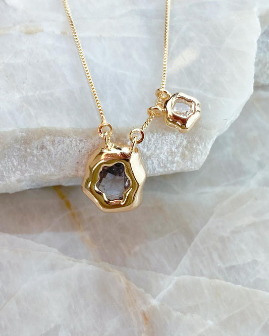 Colar Dois Pingentes Orgânico Zircônia Color 60cm