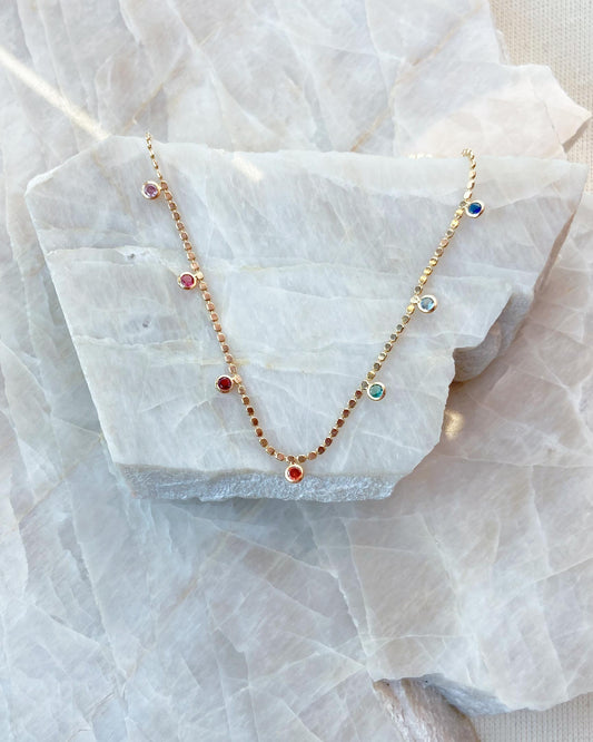 Colar Pingente Palito com Zircônias Coloridas 45cm
