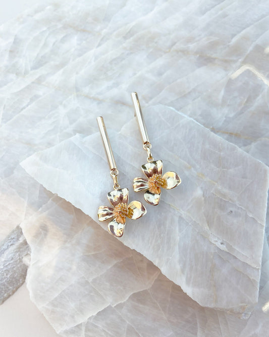 Brinco Palito com Flor Pendurada