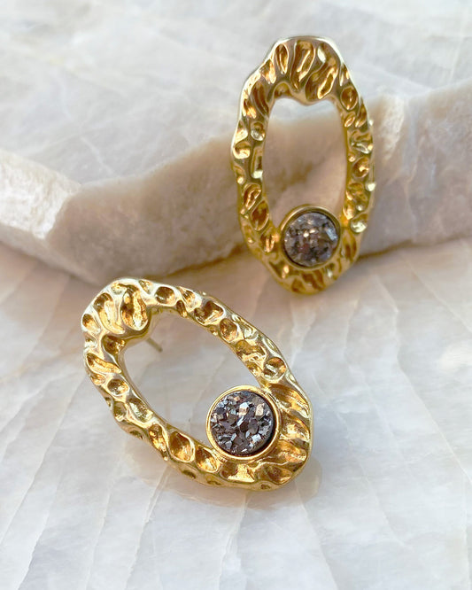 Brinco Oval com Pedra Drusa Natural
