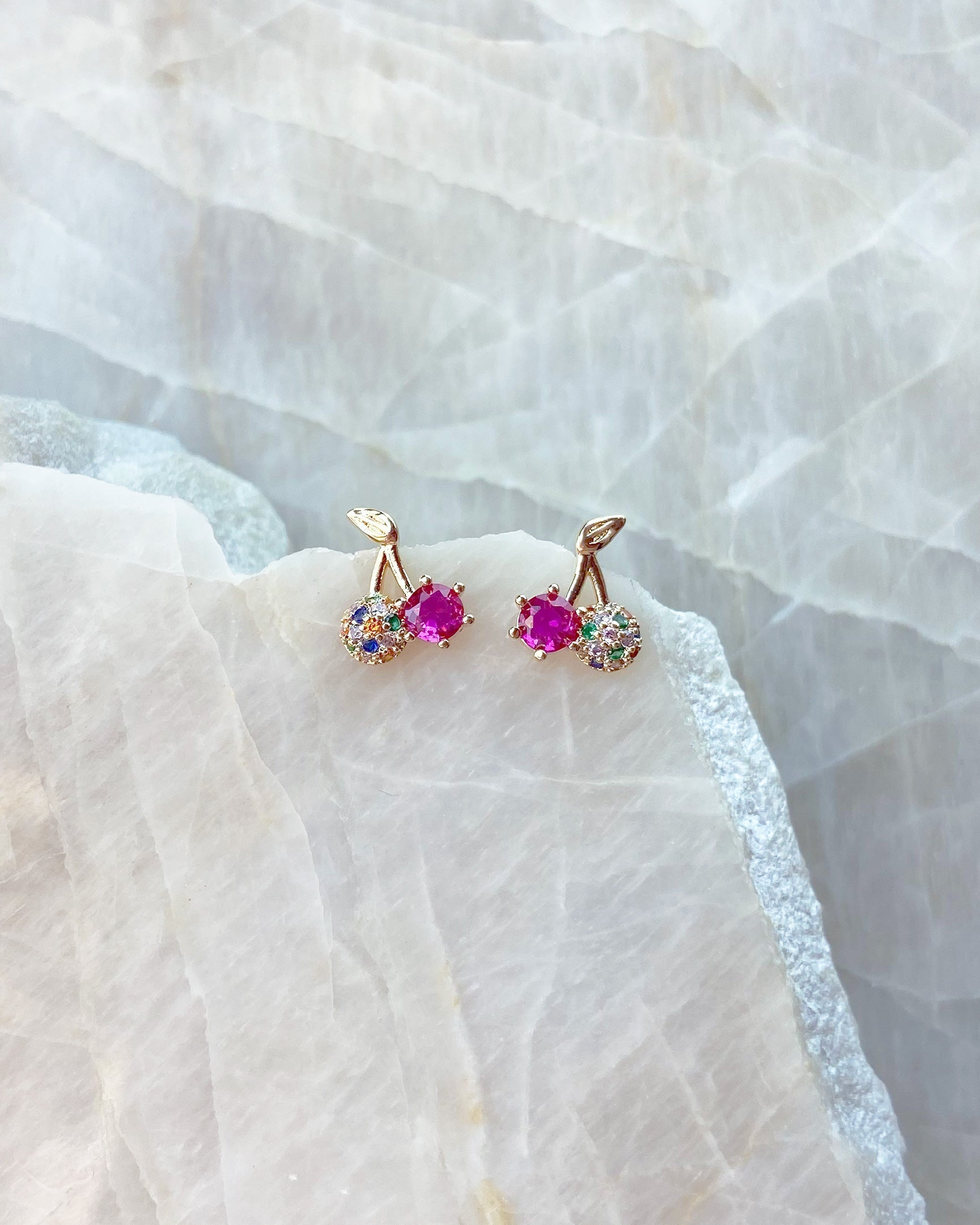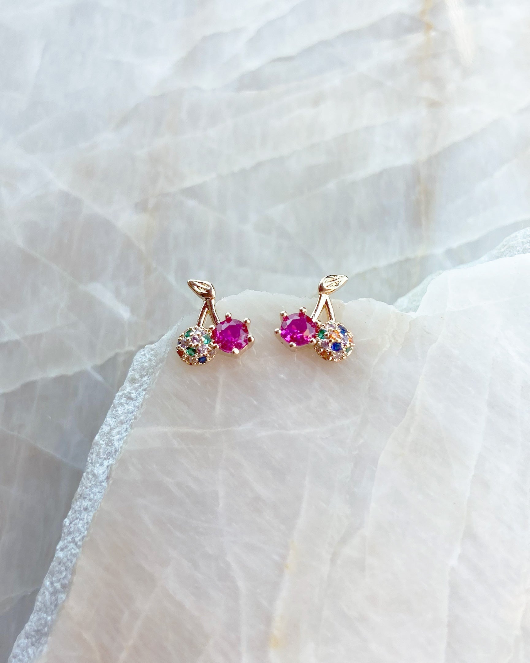 Deixe sua pequena brilhar com este adorável brinco infantil, apresentando uma vibrante pedra de zircônia em forma de cereja. Esta pequena e fofa cereja é habilmente confeccionada e delicadamente detalhada com um padrão brilhante e colorido e acompanhada de micro zircônias coloridas se torna o acessório perfeito para qualquer ocasião festiva!