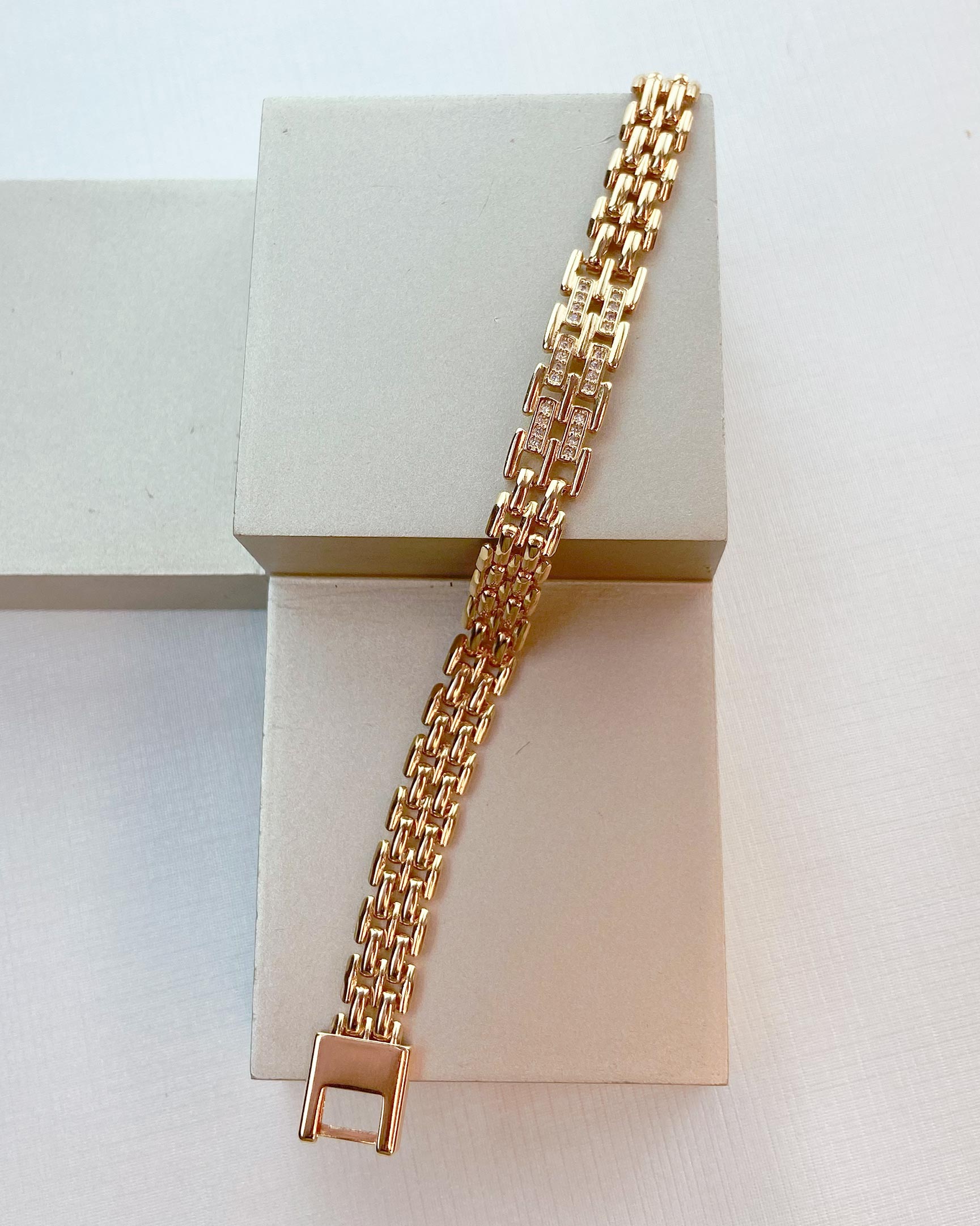 Suba o nível de elegância de qualquer look com esta pulseira relógio com zircônias cravejadas no meio. Feita com materiais premium, ela adiciona um toque sofisticado e exclusivo ao seu visual.